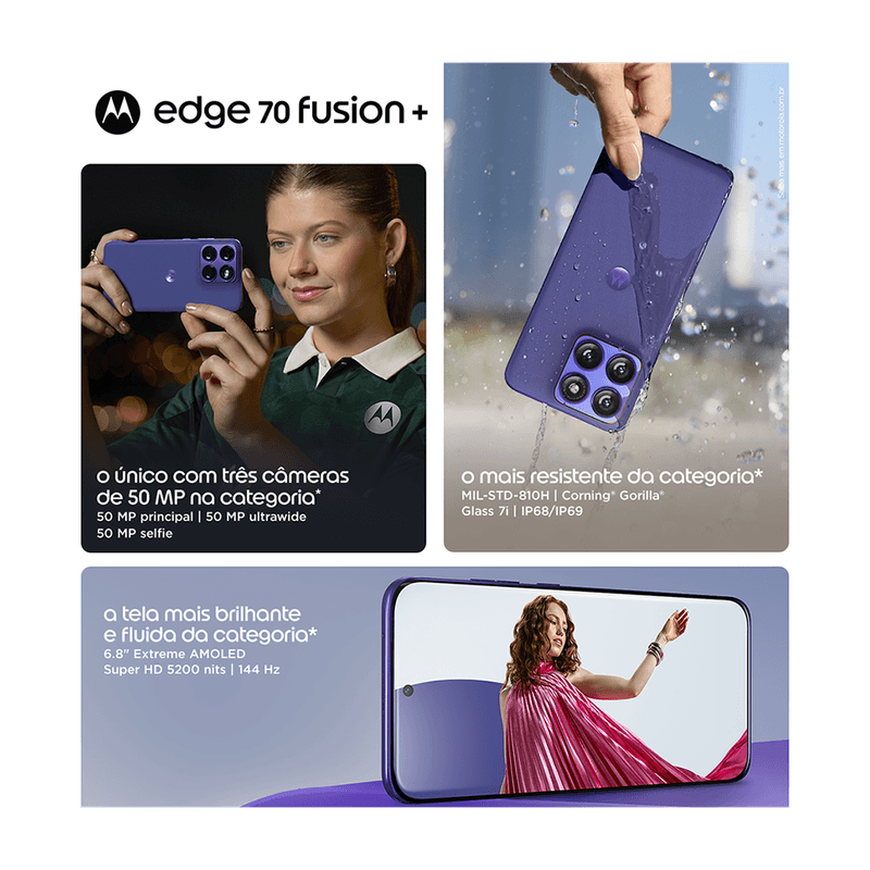 Conheça o Kit smartphone motorola edge 70 fusion + e fone moto buds loop Swarovski Champagne
